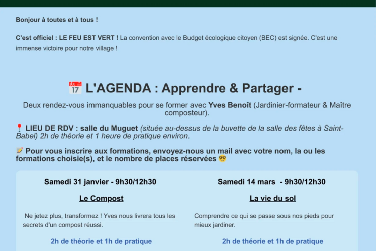Rendez-vous le 14 mars 2026 de 9 h 30 à 12h30 avec Yve BENOIT . Jardinier-Formateur et Maître composteur à Saint-Babel